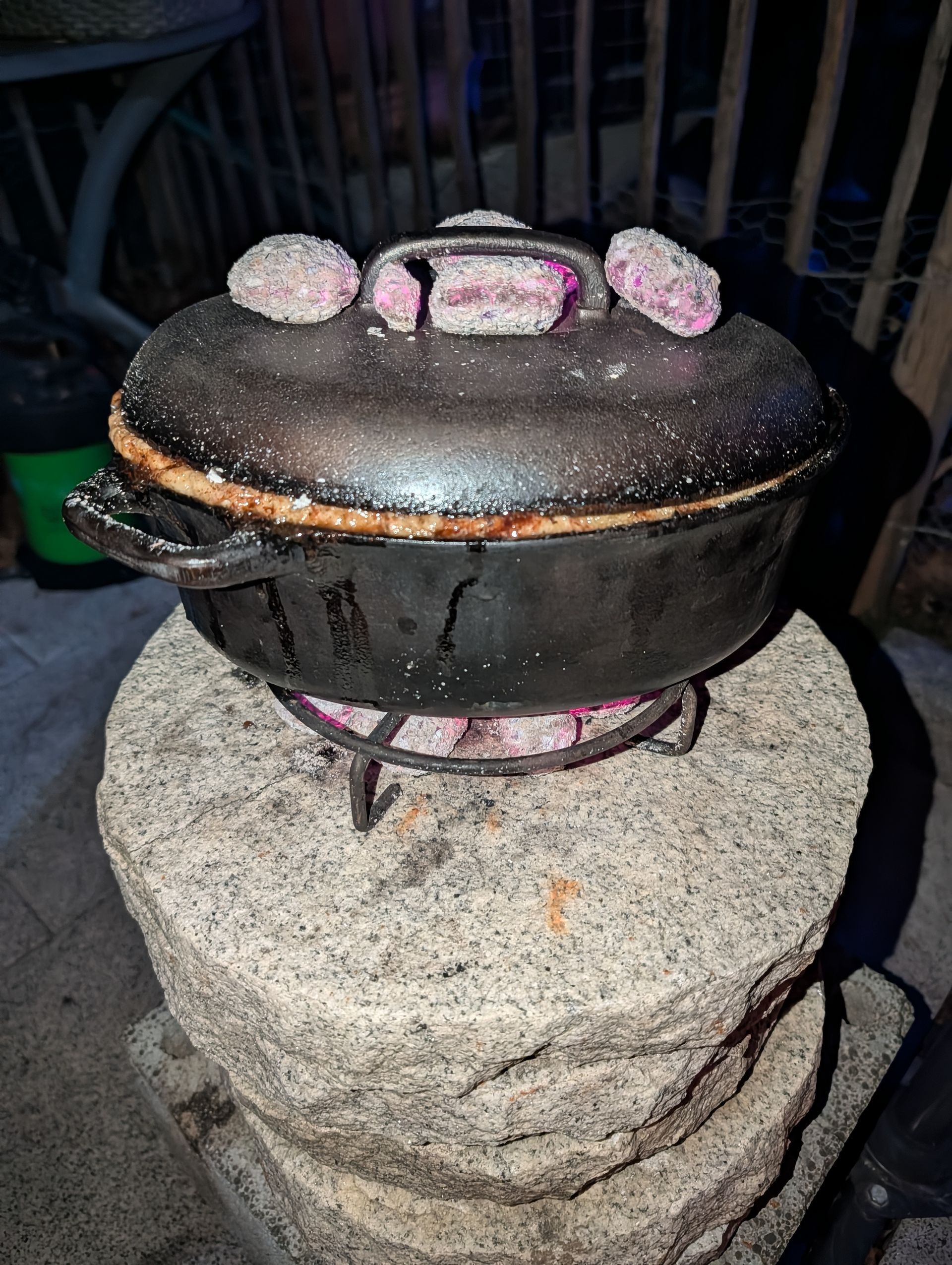 Hierbei benutzten sie auch unsere mitgebrachten Grillutensilien (Gusseiserner Topf-und Pfanne, Grillsieb) und zeigten uns auch unter Einbeziehung ihrer tollen Feuertonne verschiedene Zubereitungsmöglichkeiten von Fleich, Gemüse, Weizenteig (Zimtschnecken zum Nachtisch). Wir durften mit Abstand das bisher beste Grillfleisch genießen und haben viele Anregungen mitgenommen.